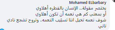 وعلق حساب آخر: يختصر مقولة الإنسان بالفطرة أهلاوي، أو بمعنى كم هي نعمة أن تكون أهلاوي، شوف نعمه تخيل إنتا تسبَيب النعمه.. وتروح تشجع نادي تاني.