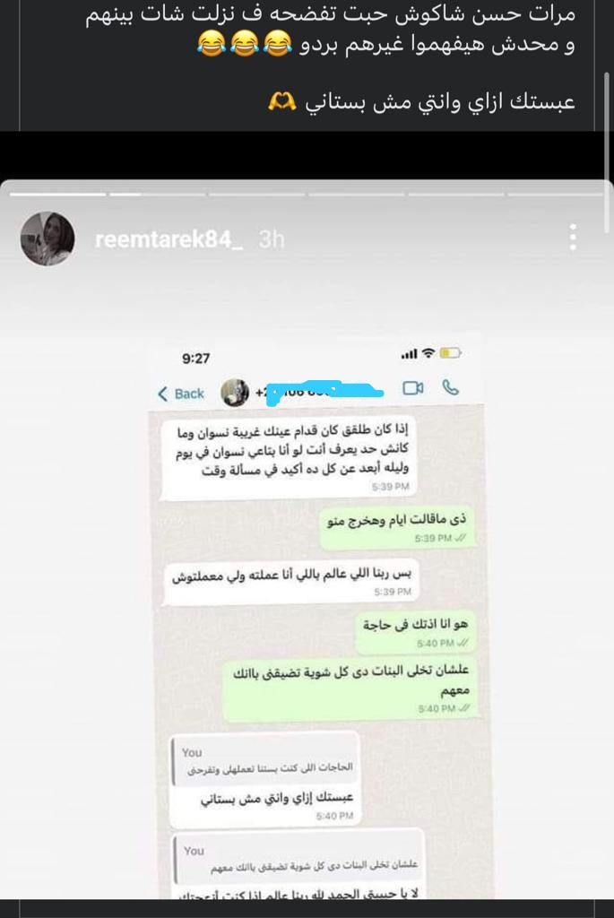 ونشرت ريم طارق شات بين زوجها حسن شاكوش سكرين لمحادثة بينها وبين زوجها على تطبيق واتساب، وذلك خلال ستوري على صفحتها الشخصية بموقع إنستجرام، لينتشر بعدها لقطة الشاشة بسرعة البرق بين رواد مواقع التواصل الاجتماعي، وأثير الجدل حول الأخطاء الإملائية التي ظهرت في المحادثة ورقم حسن شاكوش الذي نشرته ريم في الاستوري.