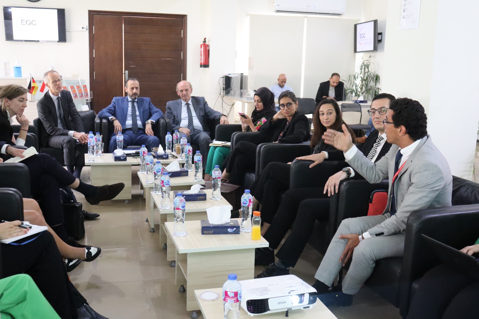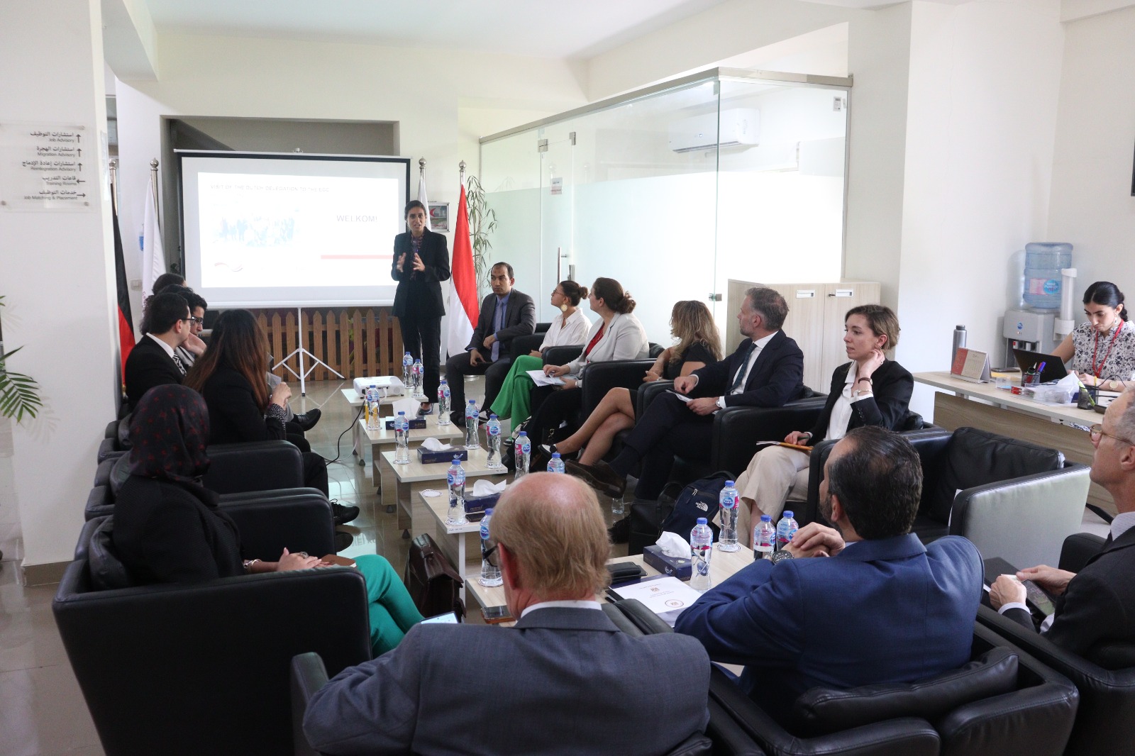استعرض فريق عمل المركز المصري الألماني للوظائف والهجرة وإعادة الإدماج، جهود المركز، بحضور الدكتور صابر سليمان، مساعد وزيرة الهجرة للتطوير المؤسسي، والمشرف على مكتب الوزير، وذلك بحضور وفد رفيع المستوى من وزارتي الخارجية والعدل والأمن الهولنديتين، والسفارة الهولندية بالقاهرة، حيث تناول العرض تجربة المركز والخدمات المقدمة للشباب من التأهيل والتدريب.
