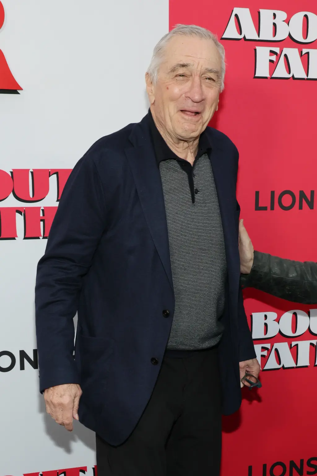 على الرغم من وجود مولود جديد في المنزل، بدا الممثل روبرت دي نيرو أنيقًا في سترة باللون الكحلي وقميص مقلم وبنطلون أسود وحذاء أسود مطابق.