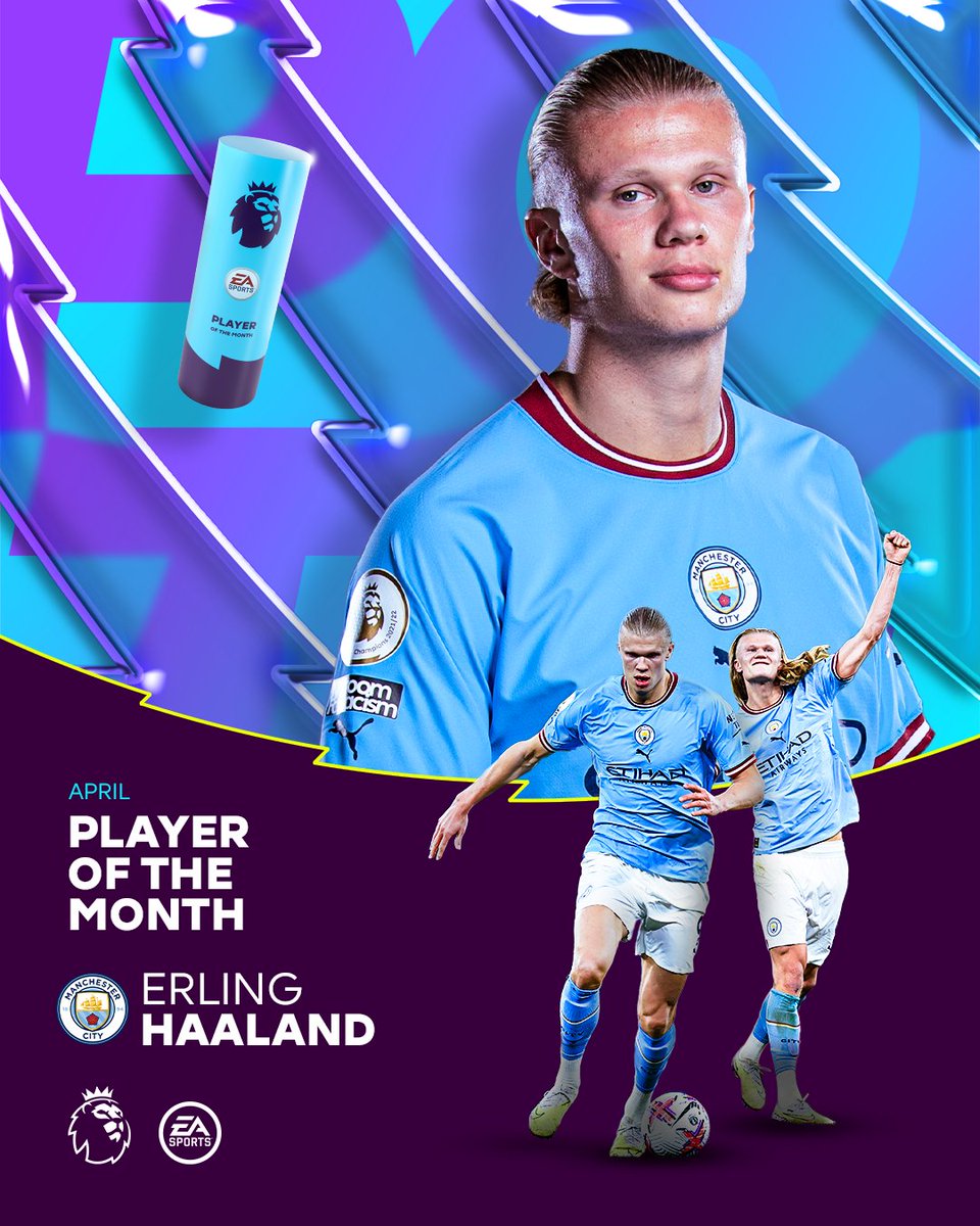 ونشرت رابطة الدوري الإنجليزي عبر حسابها الرسمي على موقع التواصل الاجتماعي تويتر، إعلان فوز هالاند بجائزة لاعب الشهر عن أدائه المميز في شهر أبريل الماضي.