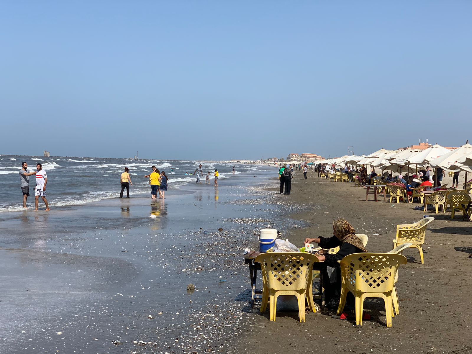 وشهد شاطئ بورسعيد إقبالا كبيرا من المصطافين من أبناء محافظة بورسعيد والمحافظات المجاورة، وذلك حرصا من الأهالي على إسعاد أبنائهم في أول أيام الإجازة، وامتدت الشماسي والكراسي على طول الشاطئ.