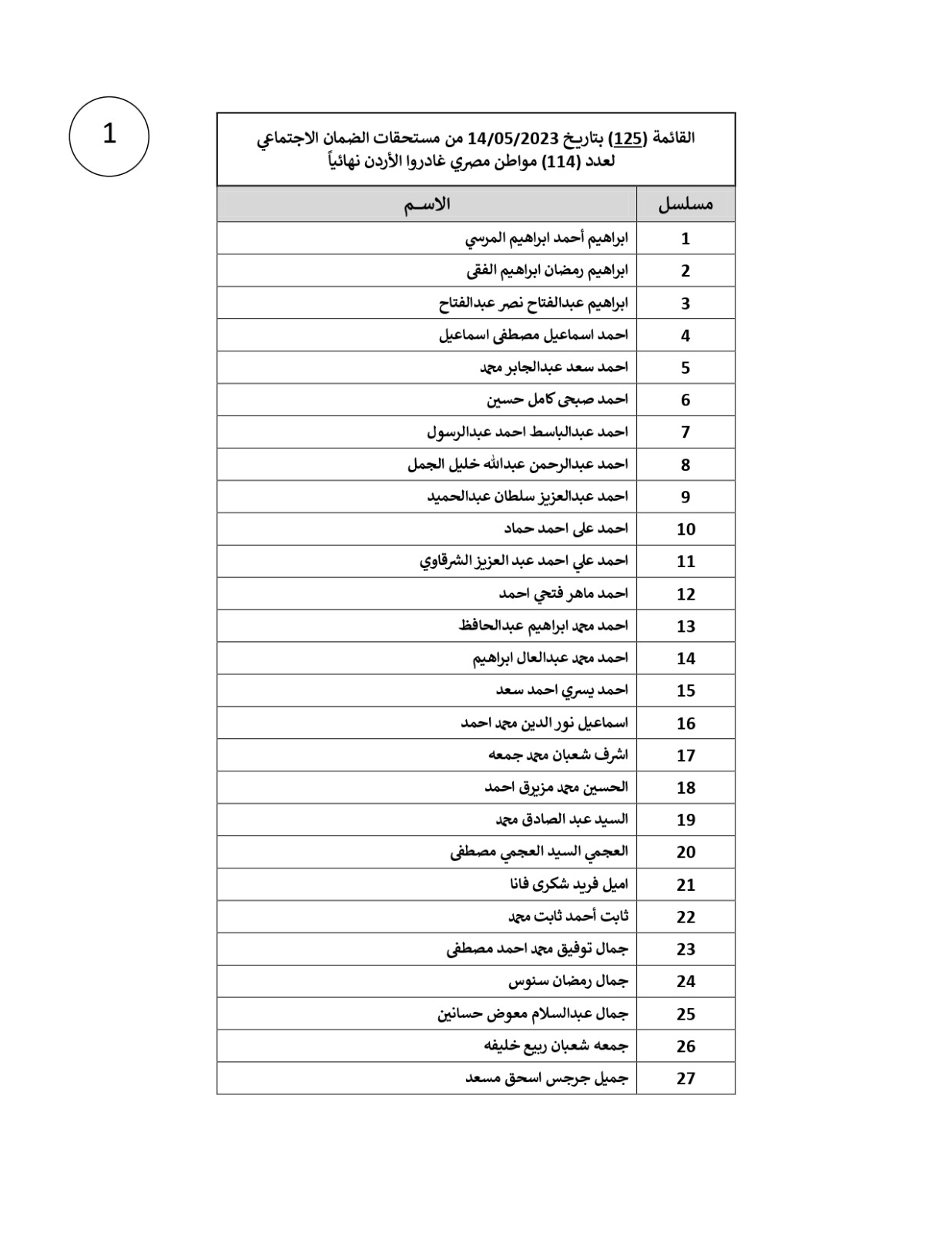 القوى العاملة: تحويل مستحقات الضمان الاجتماعي لـ 114 مصريا غادروا الأردن| أسماء