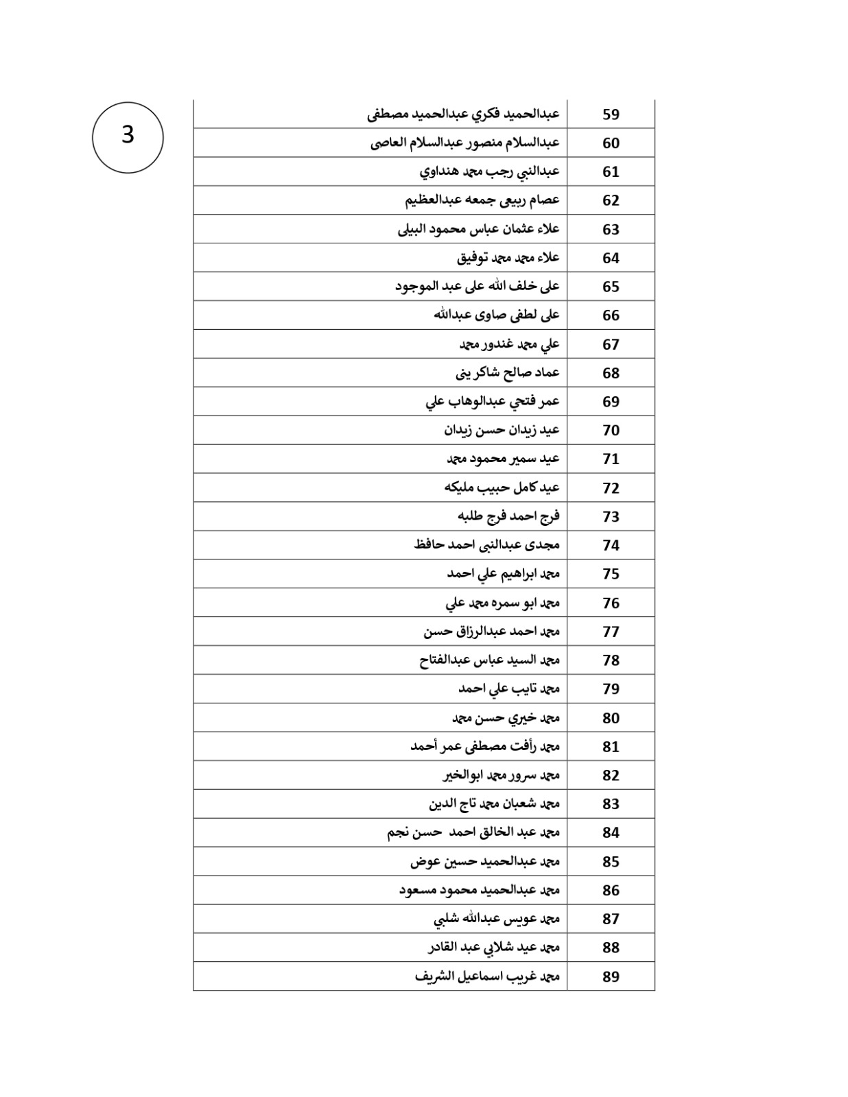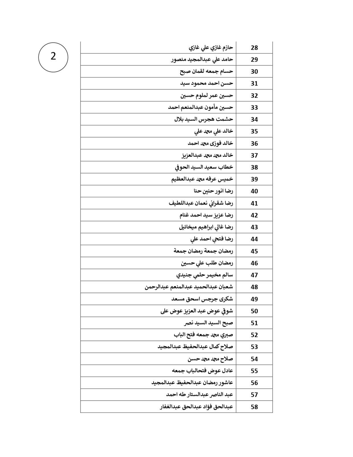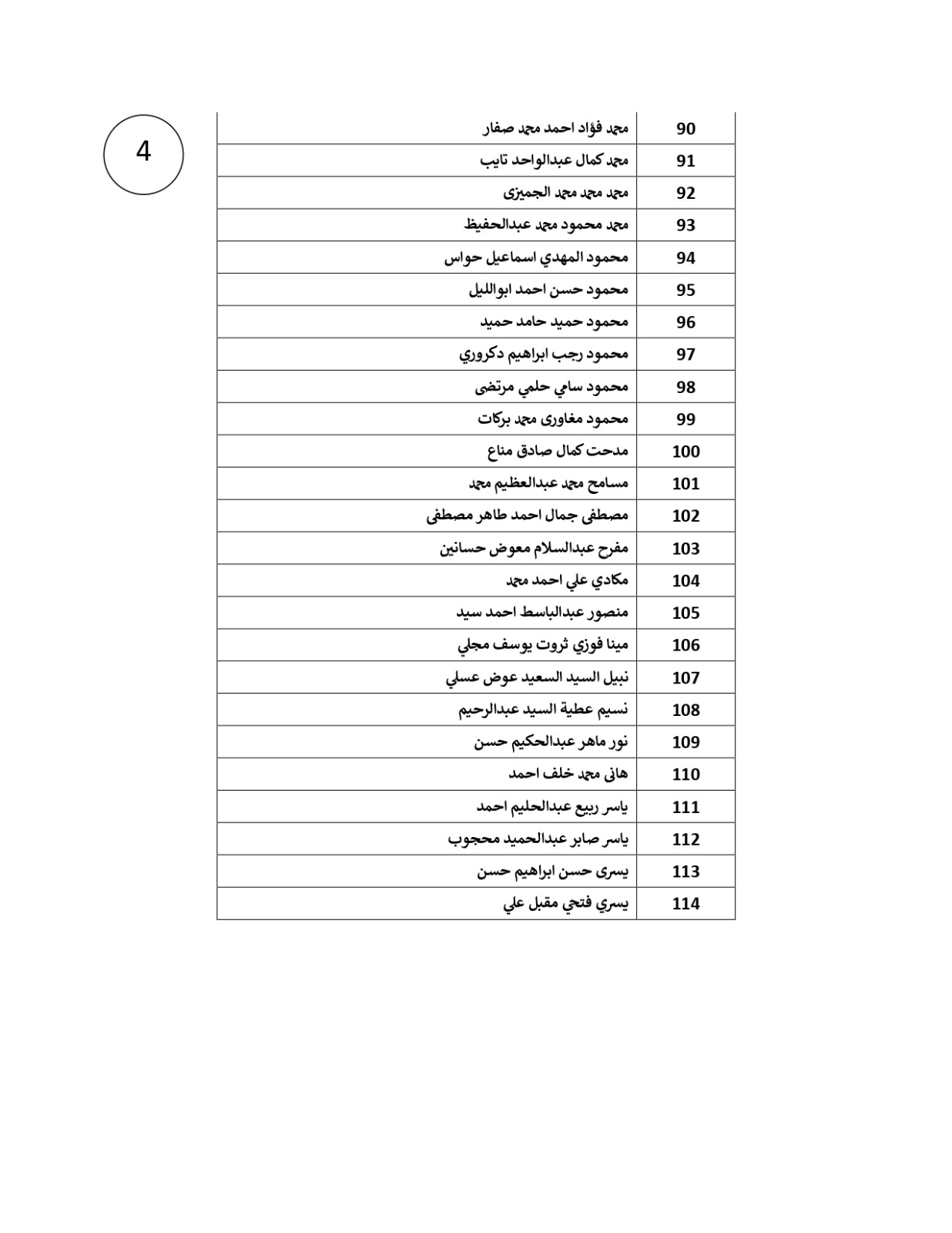 وأضاف الملحق العمالي، أنه طبقًا لإجراءات المؤسسة العامة للضمان الاجتماعي بالأردن، سيتم استرجاع المبالغ غير المصروفة بعد مرور 50 يومًا من تاريخ الإعلان عن تحويل المستحقات، مشيرًا إلى أنه يتم بشكل مستمر التنسيق والتجهيز لإرسال باقي الدفعات لمستحقيها تباعًا، فور تدقيقها من الجهات المعنية حفاظًا على حقوق المواطنين المستحقين لهذه الدفعات، وتضم القائمة الجديدة الأسماء المرفقة مع هذا البيان.