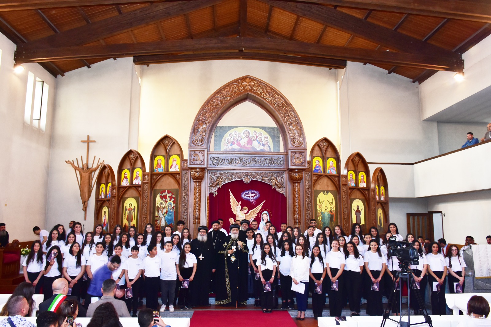 بالورد الأبيض والزغاريد.. أقباط إيبارشية ميلانو يستقبلون البابا تواضروس الثاني