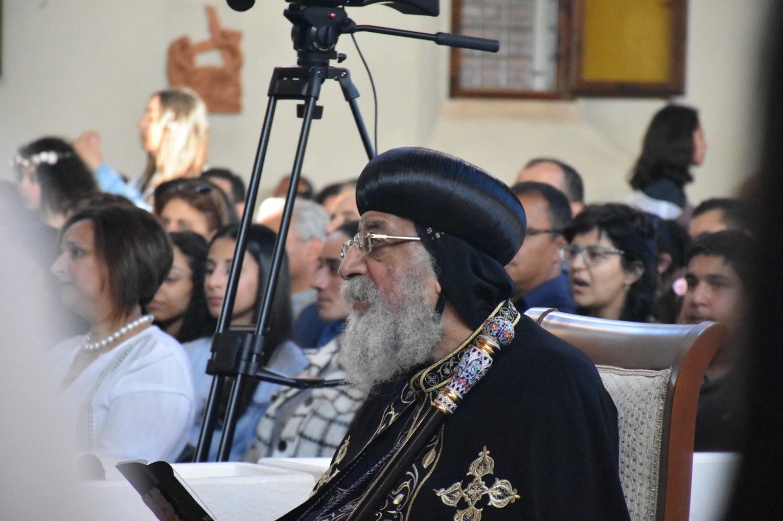 وألقى البابا كلمة أعرب في بدايتها عن سعادته بالوجود مع أبنائه، مشيدًا بجمال الكنيسة من حيث تصميمها، وأيقوناتها، ونظامها، مشيرًا إلى أن جمال الكنيسة هو انعكاس لجمال صفات شعبها.