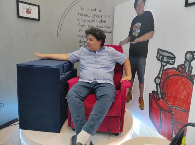 تقول الأم أميرة: كرسي متطور يقدر يخلي المشاهد في السينما يعمل كل شيء وهو ميتحركش من مكانه، عنده ترابيزة فيها 3 زراير، يقدر يدوس ويتحكم في الأكل أنه يطلعله لحد عنده، وكمان شحن التليفون، وترابيزة يقدر يستعملها طول ماهو قاعد، وبعد ما يخلص يقدر يشيل الكرسي.
