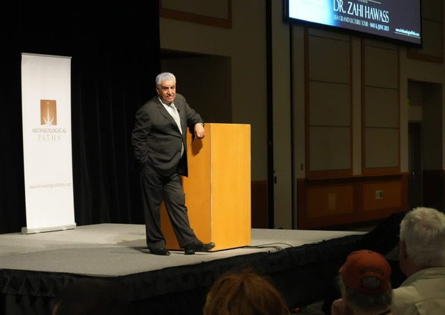 جاء ذلك خلال محاضرة ألقاها حواس حول الاكتشافات الأثرية الأخيرة في الأقصر وسقارة، بالولايات المتحدة الأمريكية، ووقع خلالها كتاب توت عنخ آمون وسر مصر.