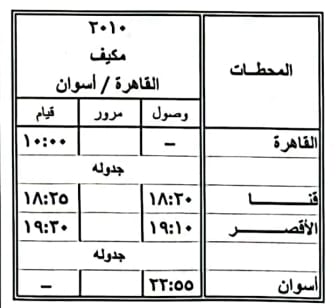 - تعديل جدول قطار 2010 مكيف القاهرة / أسوان طبقا للجدول المرفق.