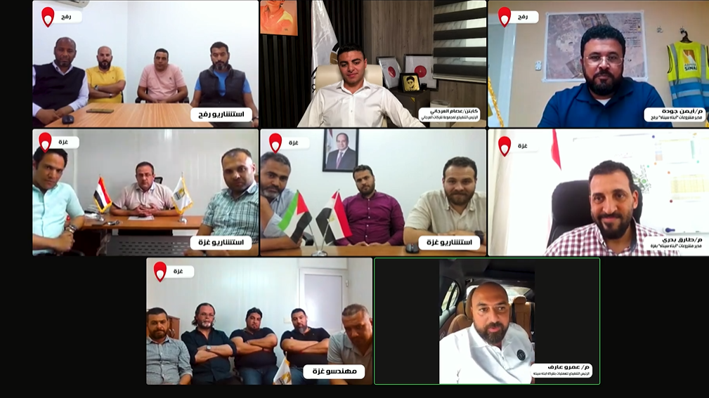 عقد عصام العرجاني، الرئيس التنفيذي لـ مجموعة شركات العرجاني، لقاءً مع العاملين بـ شركة أبناء سيناء، الذين يقومون بتنفيذ بعض المشاريع في الأراضي الفلسطينية وبالتحديد غزة ورفح، عبر برنامج زوم، وذلك من أجل الاطمئنان على سلامة كل أفراد المجموعة في ظل الظروف القاسية الجارية على الأراضي الفلسطينية.