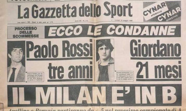 وبالطبع بطلنا صاحب الحظ التعيس باولو روسي، كان من ضمن المتورطين في المراهنات حيث راهن على ترتيب نتيجة مباراة فريقه ضد أفيلينو في 30 ديسمبر 1979، وعوقب بالإبعاد عن ممارسة أي نشاط لكرة القدم لمدة 3 سنوات وبعد الاستئناف تم تخفيضها إلى سنتين.