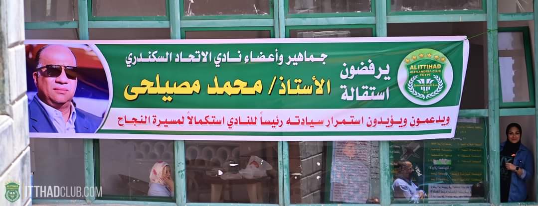 حرص عدد كبير من جماهير نادي الاتحاد السكندري وأعضائه على التجمع داخل مقر النادي السكندري، من أجل المطالبة بتراجع محمد مصيلحي رئيس مجلس إدارة النادي عن استقالته.