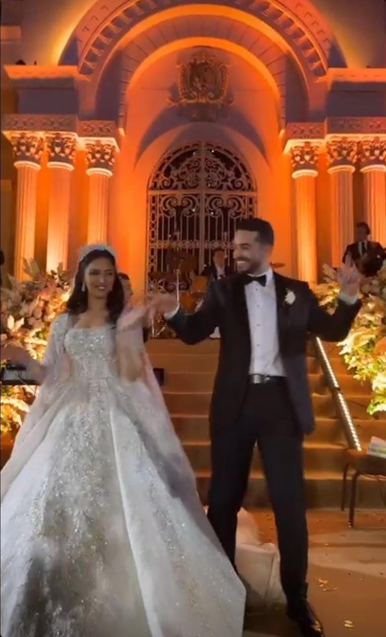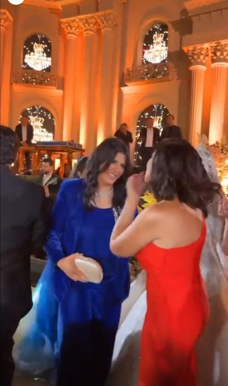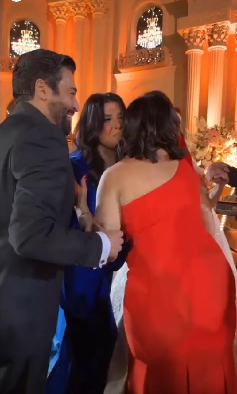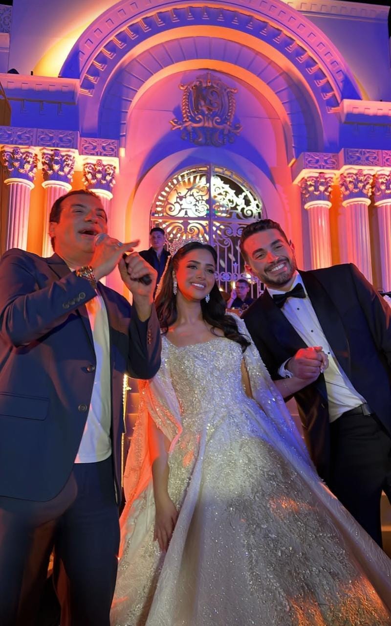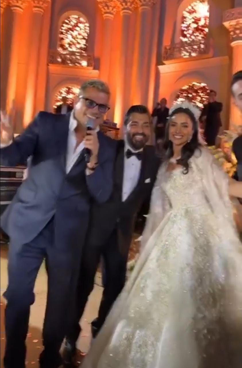وحضر كلا من الإعلامية منى الشاذلي والفنانة يسرا والشاعر تامر حسين وساندي وإيهاب توفيق ومحمد محيي، بينما أحيا المطرب عمرو دياب حفل الزفاف بمجموعة من أشهر أغانيه، أبرزها دا لو اتساب وحبيبي يا نور العين ويا أنا يا لأ، وسط تفاعل كبير من الحاضرين.