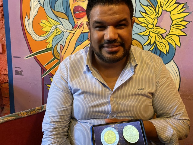 وقال: سافرت للقاهرة لعرض تصميمي وسط المئات من التصميمات والمصممين الذين تقدموا للمسابقة بأفكارهم، وكانت فكرتي ببساطة تتلخص في إبراز الهوية المصرية القديمة، وهذا ما أشرت إليه بزهرة اللوتس بشكل دائري.