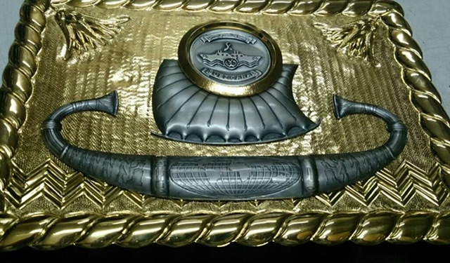 ويضيف وليد: ثم أشرت إلى قناة السويس وذلك بكلمة قناة باللغة العربية في المنتصف، وبرسم لمياه القناة يعلوها شكل سفينة تتصاعد منها الأدخنة، كرمز للسفن العابرة لقناة السويس.