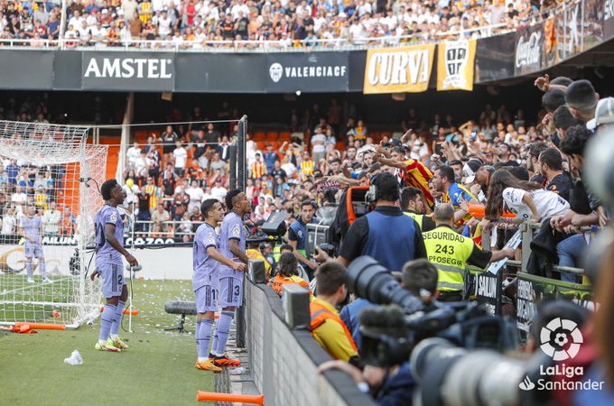وكشفت صحيفة ماركا الإسبانية أن فينيسيوس تعرض إلى العنصرية من أحد مشجعي فالنسيا، وظل يشير للاعبي فالنسيا على المشجع الذي هاجمه بالتحديد ولكن لم ينتبه اللاعبون له.