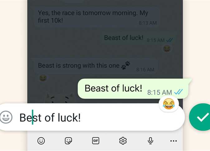 وأعلنت مدونة واتساب، أنه في اللحظات التي ترتكب فيها خطأ أو تغير رأيك ببساطة، يمكنك الآن تعديل رسائلك المرسلة، وتشمل التعديلات المتاحة على الرسائل تصحيح خطأ إملائي بسيط إلى إضافة كلام إلى الرسالة.