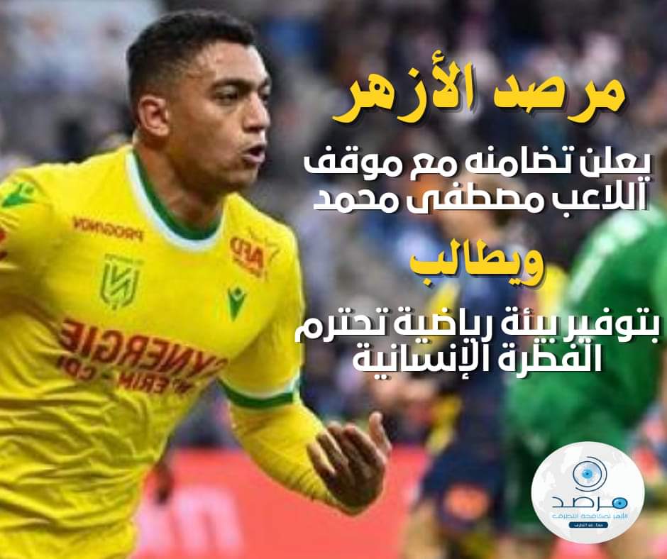 أعرب مرصد الأزهر لمكافحة التطرف، عن تضامنه مع موقف اللاعب المصري مصطفى محمد بعد فرض نادي نانت الفرنسي لكرة القدم غرامة مالية عليه بسبب رفضه المشاركة في حملة لدعم الشذوذ الجنسي.