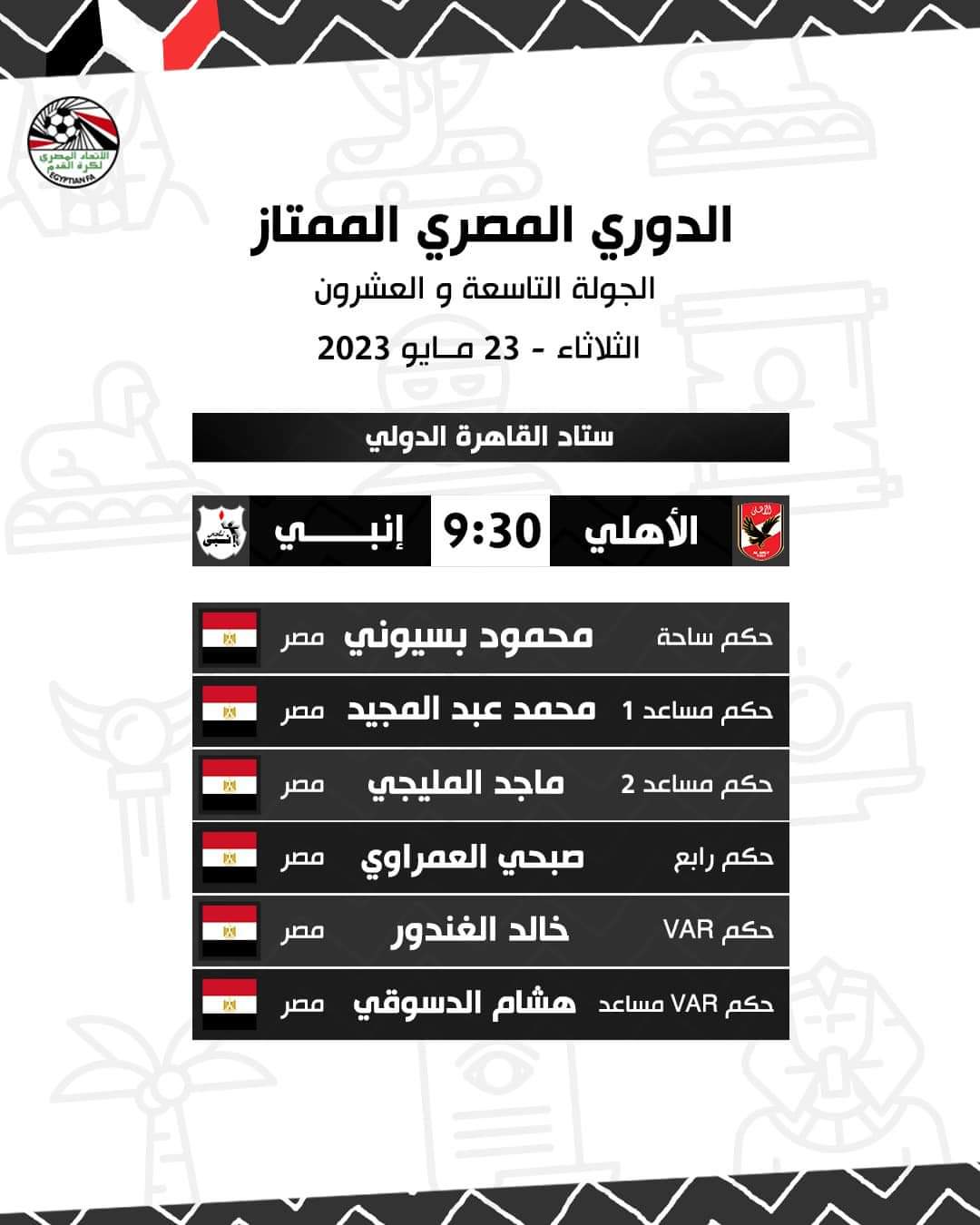 حكام مباراة الأهلي وإنبي في الدوري المصري