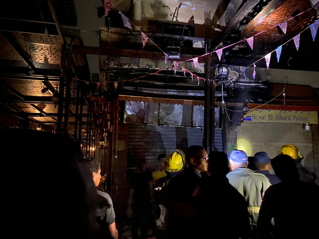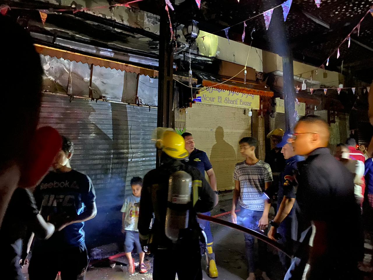 وقامت قوات الحماية المدنية بالسيطرة على الحريق وتحجيمه ومنع امتدادة إلى باقي البازارات المجاورة أو إلى بقية السوق، والذي نتج عن ماس كهربائي بالبازار.