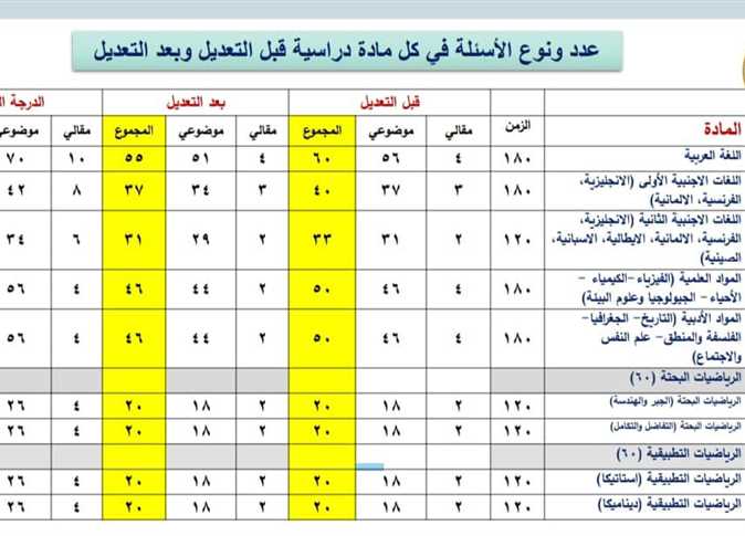 بعدما تعرفنا على توزيع درجات امتحانات الثانوية العامة في جميع المواد لكل الشعب، نوضح لكم الآن توزيع أسئلة امتحانات الثانوية العامة 2023 وهي الامتحانات المقرر عقدها خلال الفترة الزمنية من 12/6/2023 إلى 15/7/2023 كالتالي: