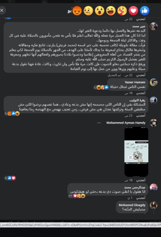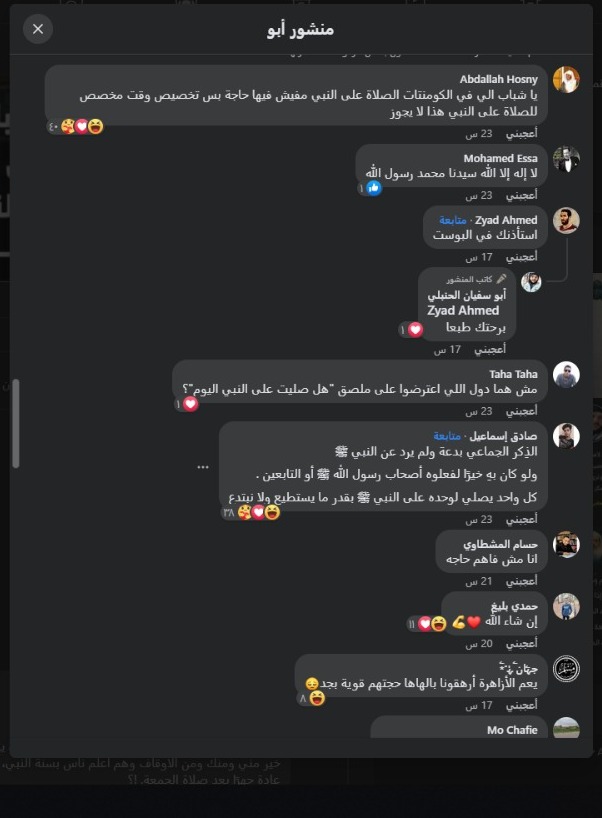 أضاف عضو هيئة كبار العلماء في الأزهر الشريف: هؤلاء الذين يمنعون الصلاة على النبي محمد صلى الله عليه وسلم بعد الجمعة، هم البدعة ذاتها؛ لأنهم لا يحبون الله ولا رسوله.