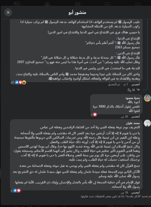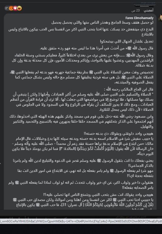 المهاجمون اعتمدوا في منشوراتهم على قول الإمام مالك -رضي الله عنه-: «من ابتدع في الإسلام بدعة يراها حسنة؛ فقد زعم أن محمدًا خان الرسالة؛ لأن الله يقول: "اليوم أكملت لكم دينكم"؛ فما لم يكن يومئذ دينًا فلا يكون اليوم دين».