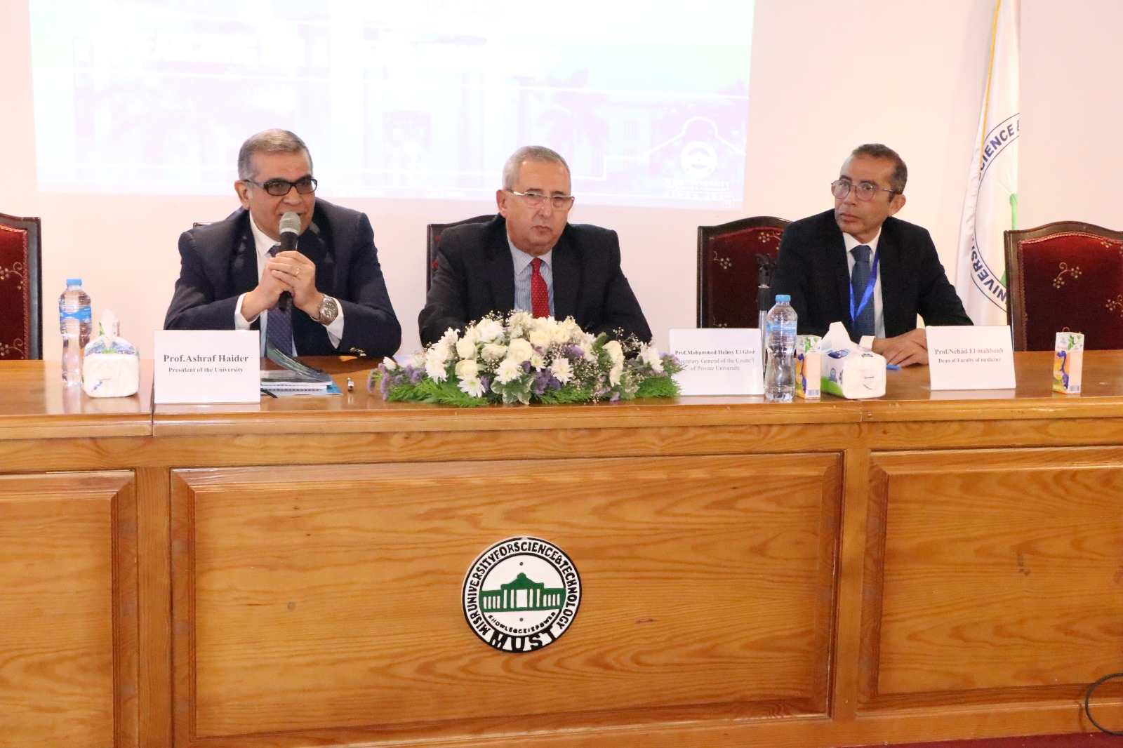 وأكد الدكتور محمد حلمي الغر أمين عام المجلس الأعلى للجامعات الخاصة والأهلية، خلال المؤتمر على دور جامعة مصر للعلوم والتكنولوجيا وكلية الطب فى تطبيق البرنامج، وكون هذا أول مؤتمر طلابي في الجامعات الخاصة والأهلية، مشيرا إلى إنه يعد نواة لبداية مثمرة فى عالم البحث العلمي والنشر الطلابي، موضحا أن هذا يأتي ضمن تشجيع رئيس مجلس أمناء جامعة مصر للعلوم والتكنولوجيا خالد الطوخي للبحث العلمي وجعله من أولويات الجامعة لتحقيق أهداف الدولة وخطة 2030 وأهداف التنمية المستدامة.