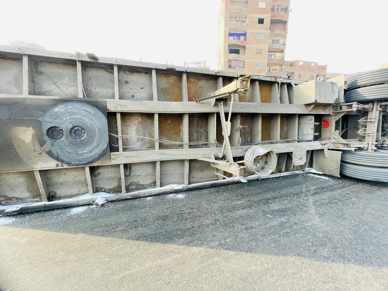 انقلاب سيارة نقل أعلى الدائري