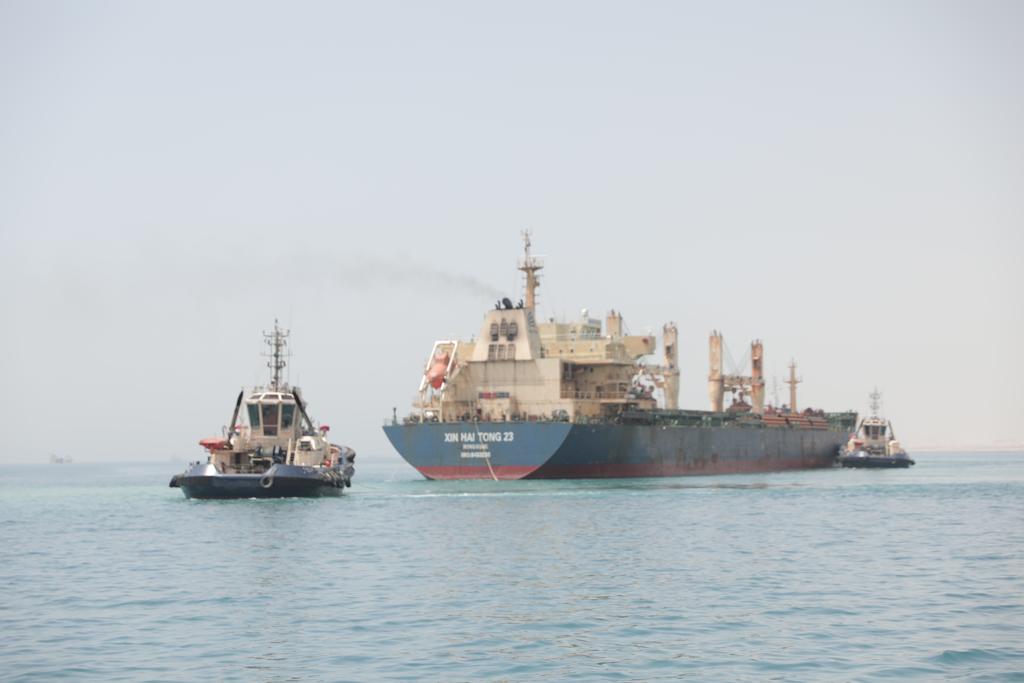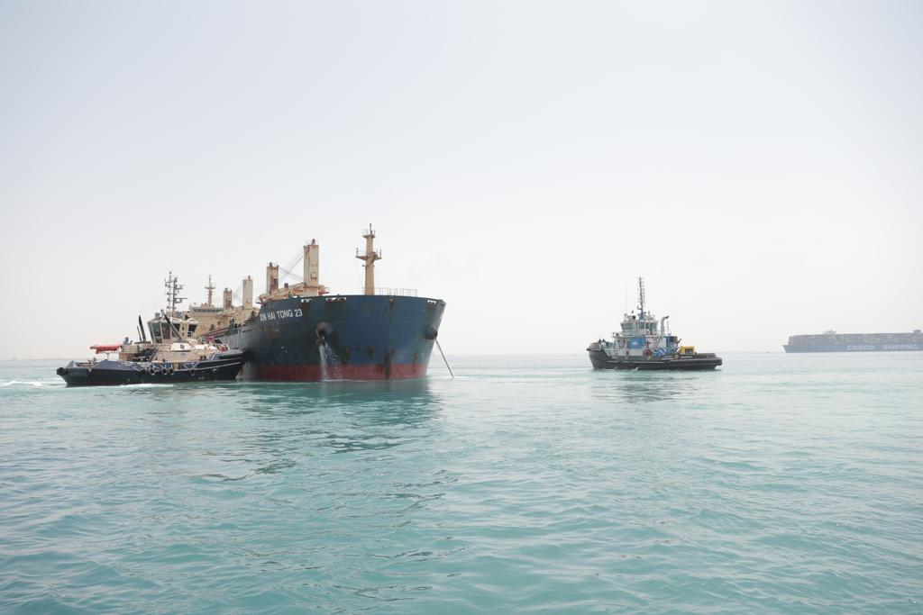 وصول سفينة البضائع الجانحة لمنطقة الانتظار بغاطس السويس