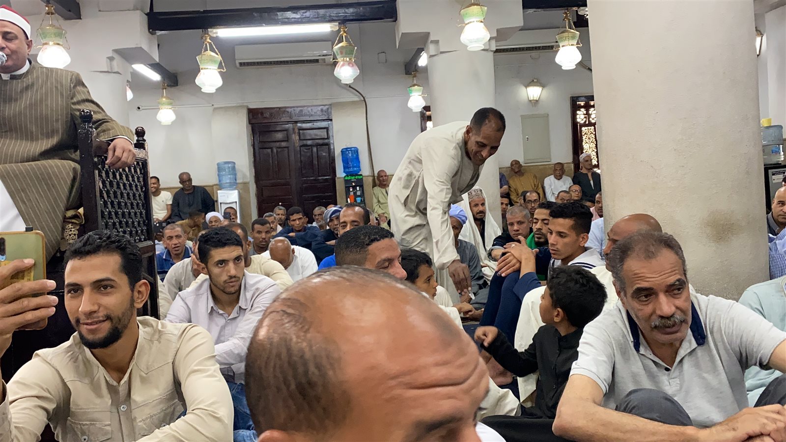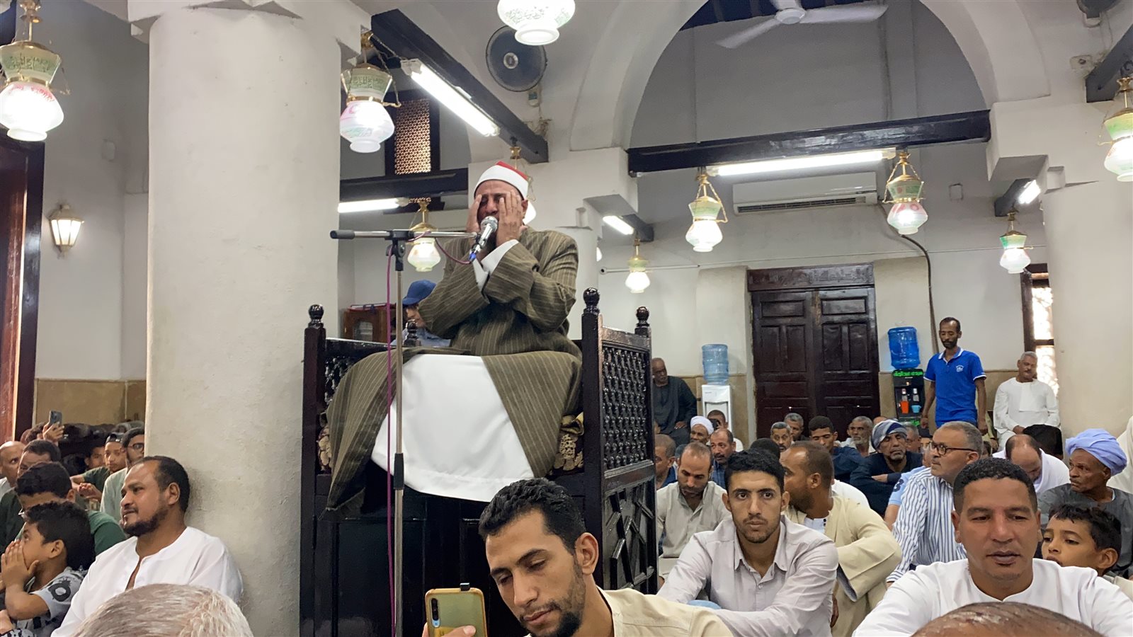 واستهل قارئ المسجد قبل الصلاة بآيات من القرآن الكريم فيها الصلاة على النبي، ليتفاعل المصلون معها بترديد الصلاة على النبي بصوت عالي.