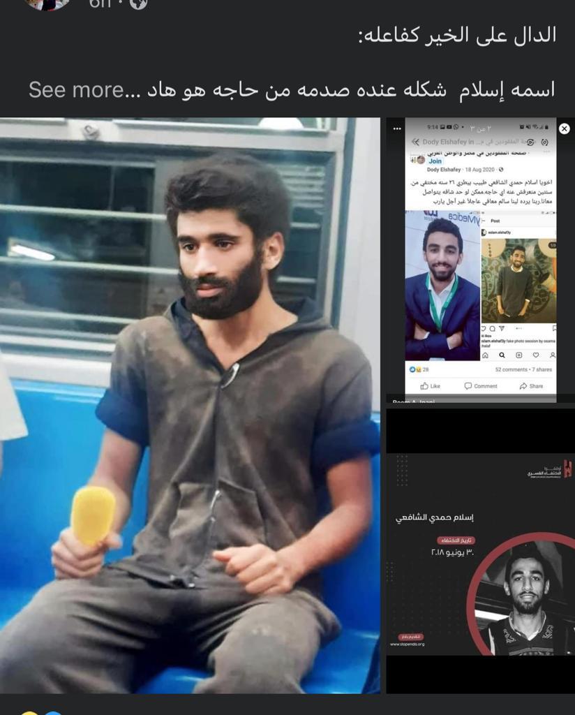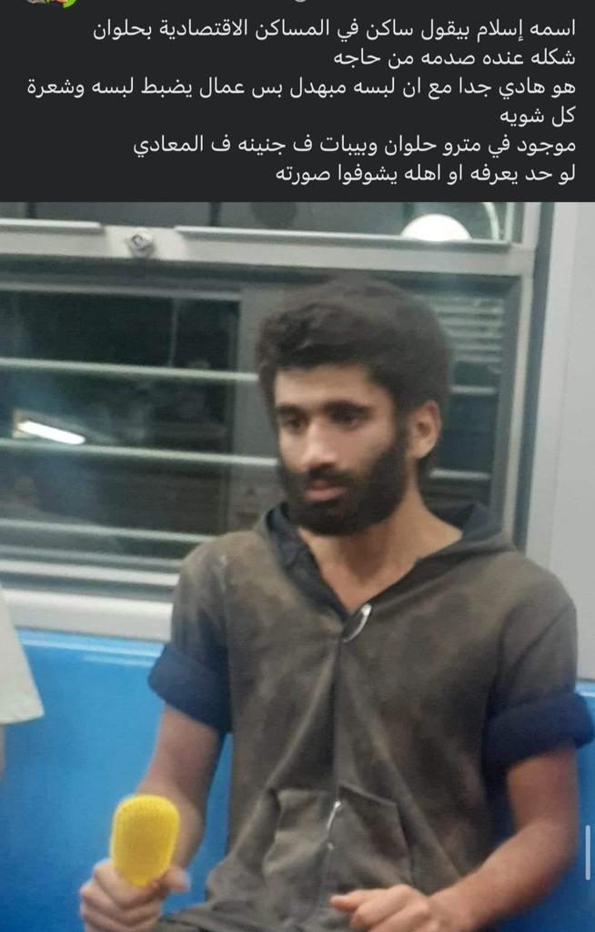 وبعد 3 سنوات من نشر البوست، التقط أحد مستخدمي فيسبوك صورة لشخص يدعى إسلام من المترو الذي ظهر في حالة سيئة جدًا، وكتب: اسمه إسلام بيقول ساكن في المساكن الاقتصادية بحلوان، شكله عنده صدمة من حاجة، هو هادي جدًا مع إن لبسه مبهد ل بس عمال يضبط لبسه وشعره كل شوية، موجود في مترو حلوان، وبيبات في جنينة في المعادي، لو حد يعرفه أو أهله يشوفوا صورته.