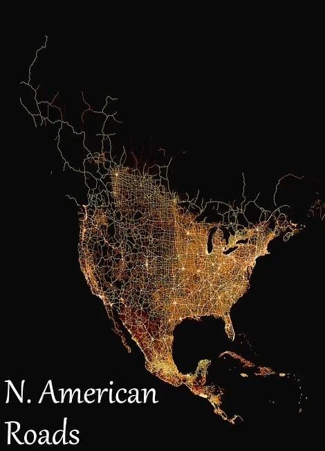 وتكشف البيانات أنه من بين 13 مليون ميل، أي 21 مليون كيلومتر، من الطرق في جميع أنحاء العالم، يوجد 1.86 مليون ميل، أي 3 ملايين كيلومتر، في الولايات المتحدة.