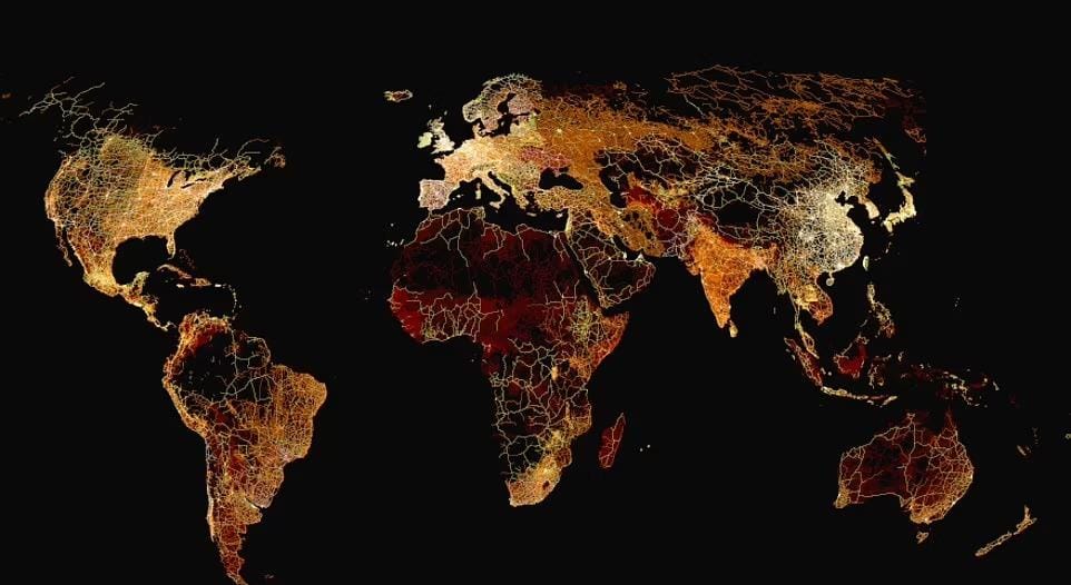 طولها 13 مليون ميل.. خريطة تكشف شبكة الطرق على كوكب الأرض