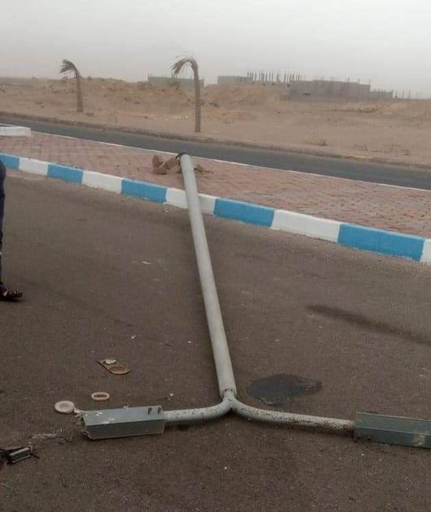سقوط عمود إنارة بسبب سوء الأحوال الجوية