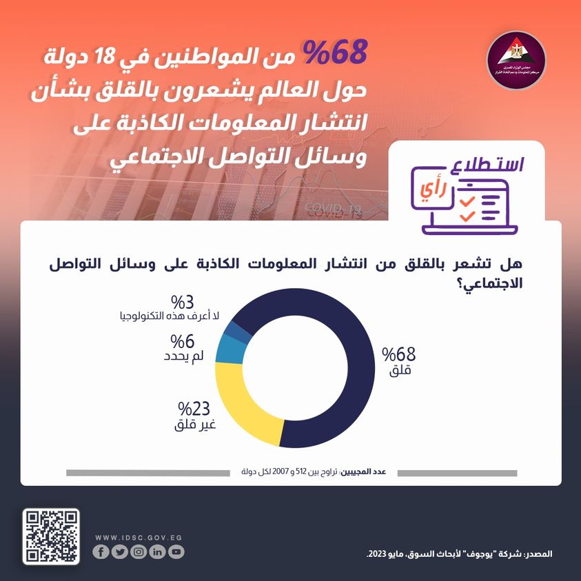 معلومات الوزراء: 68% من مواطني 18 دولة قلقون بشأن انتشار معلومات كاذبة على وسائل التواصل