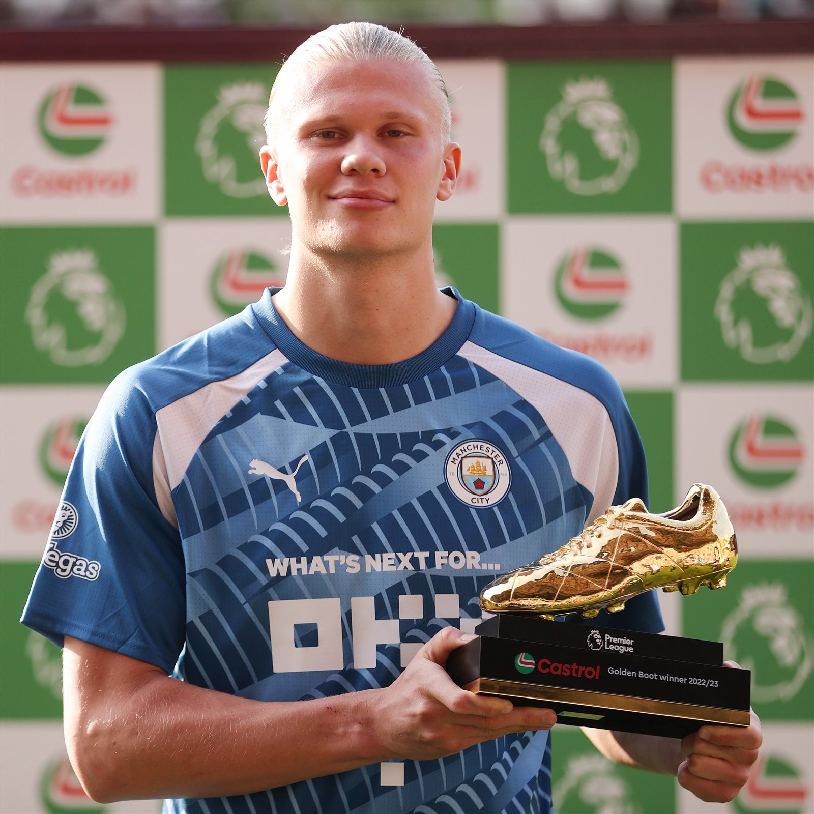 استلم النرويجي هالاند مهاجم فريق مانشستر سيتي، جائزة الحذاء الذهبي كهداف النسخة الحالية من مسابقة الدوري الإنجليزي الممتاز برصيد 36 هدفا.