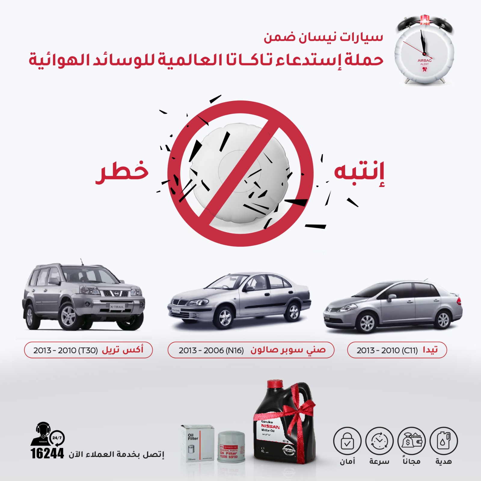 وتأتي الحملة استكمالًا لحملة استدعاء سابقة لبعض سيارات نيسان ومن بينها تيدا C11 موديلات من 2010 -2013، وطراز صني سوبر صالون موديلات بين 2006 – 2013، وموديلات أكس تريل T30 موديلات بين 2010 – 2013.