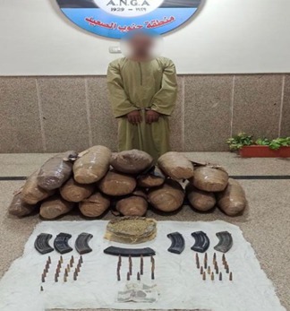 كما تم ضبط عنصر إجرامي "له معلومات جنائية" حال وجوده بمسكنه بدائرة المركز وبحوزته كمية من مخدر البانجو وزنت 64 كيلو جرام وكمية من بذور نبات القنب المخدر وزنت 5 كيلو جرام وكمية من مخدر الحشيش وعدد 7 خزائن بندقية آلية وعدد من الطلقات لذات العيار ومبلغ مالي.