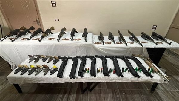ضبط عدد 33 قطعة سلاح ناري، عبارة عن عدد 13 بندقية آلية وعدد 9 بنادق خرطوش وعدد 11 فردا محليا وعدد من الطلقات مختلفة الأعيرة، بحوزة 25 متهم "لعدد 15 منهم معلومات جنائية".