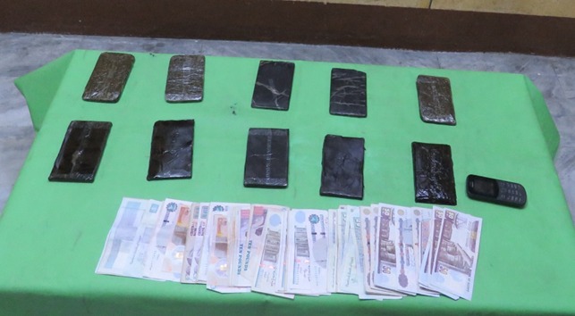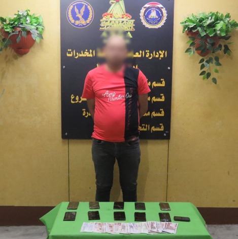 ضبط أحد الأشخاص ومقيم بدائرة قسم شرطة ثان العاشر من رمضان حال تواجده بدائرة القسم وبحوزته كمية من مخدر الحشيش ومبلغ مالي وهاتف محمول وسلاح أبيض.