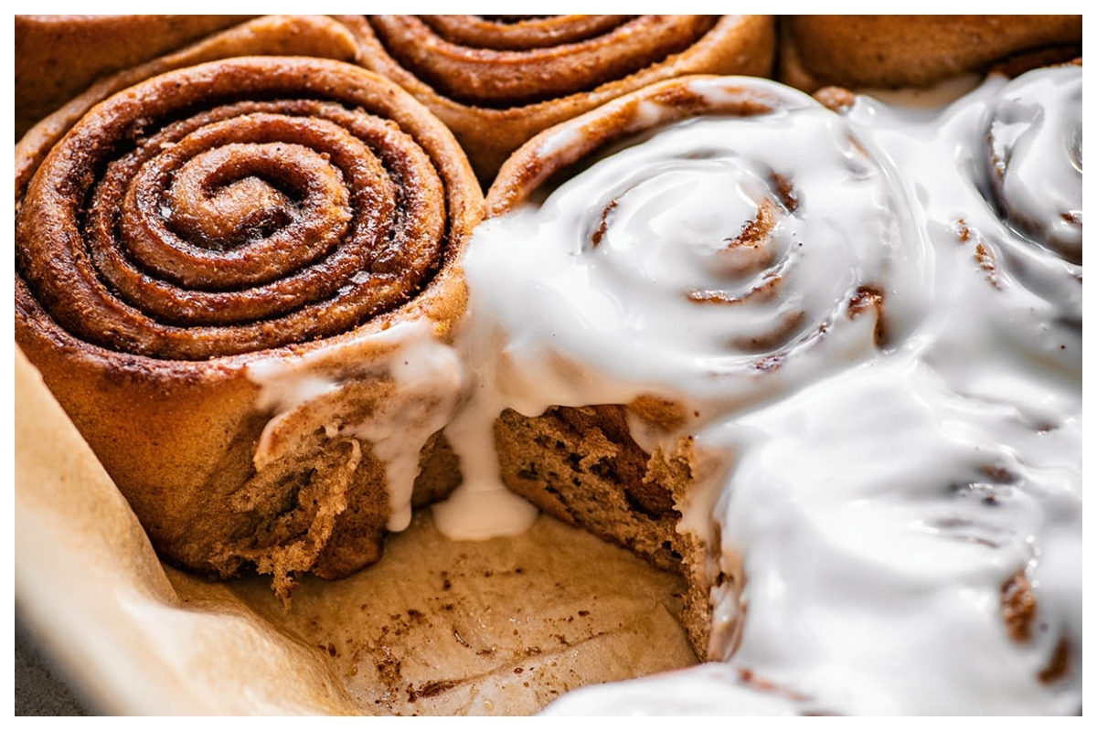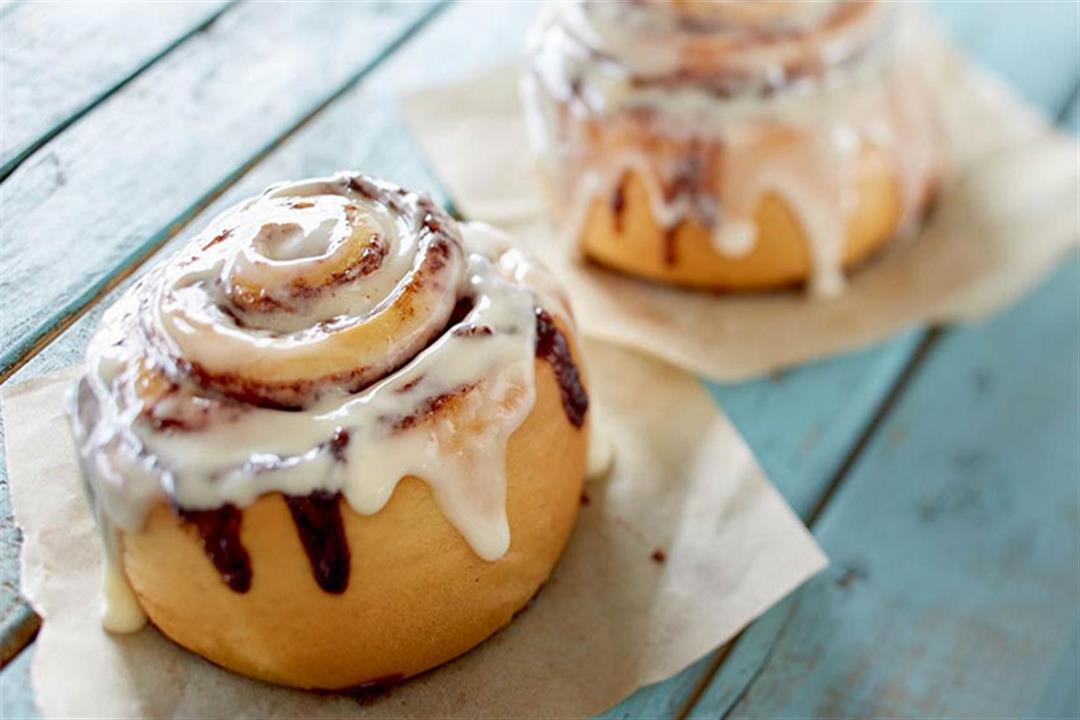 - إخراج السينابون من الفرن، وإضافة الصوص على الوجه وهو ساخن مع تقديمه بصوص الكراميل أو الشوكولاتة.
