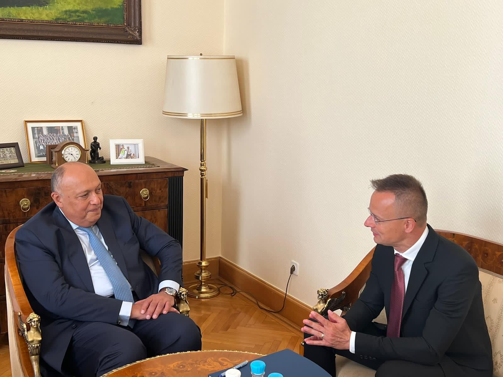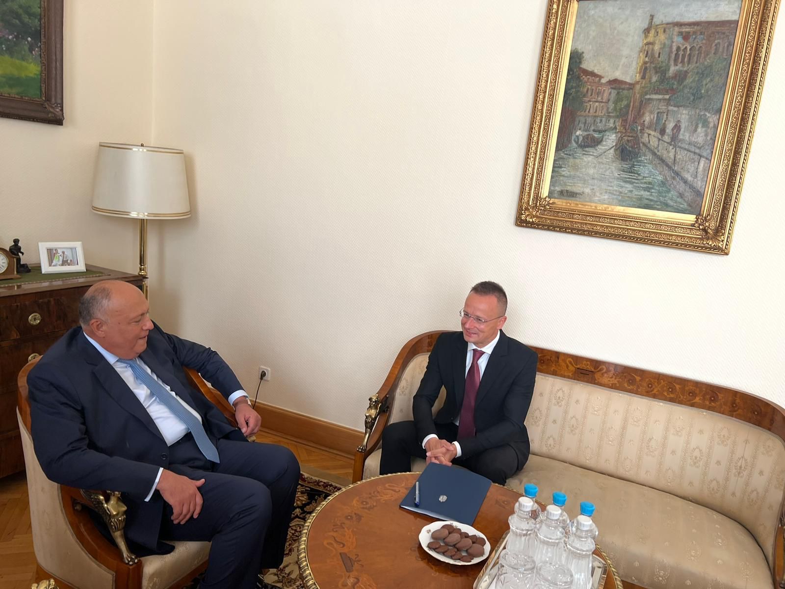 أجرى سامح شكري وزير الخارجية، مباحثات سياسية موسعة مع نظيره المجري بيتر سيارتو، خلال زيارته إلى العاصمة المجرية بودابست.