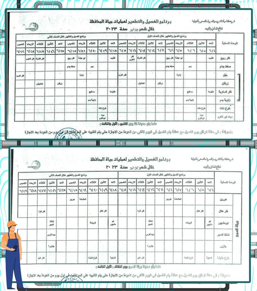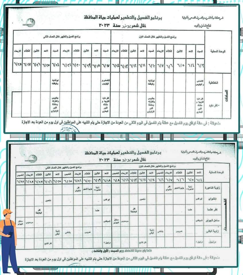 وناشدت الشركة المواطنين تدبير احتياجاتهم من المياه وعدم استخدامها خلال فترة الغسيل حتى وإن وجدت بالشبكة.