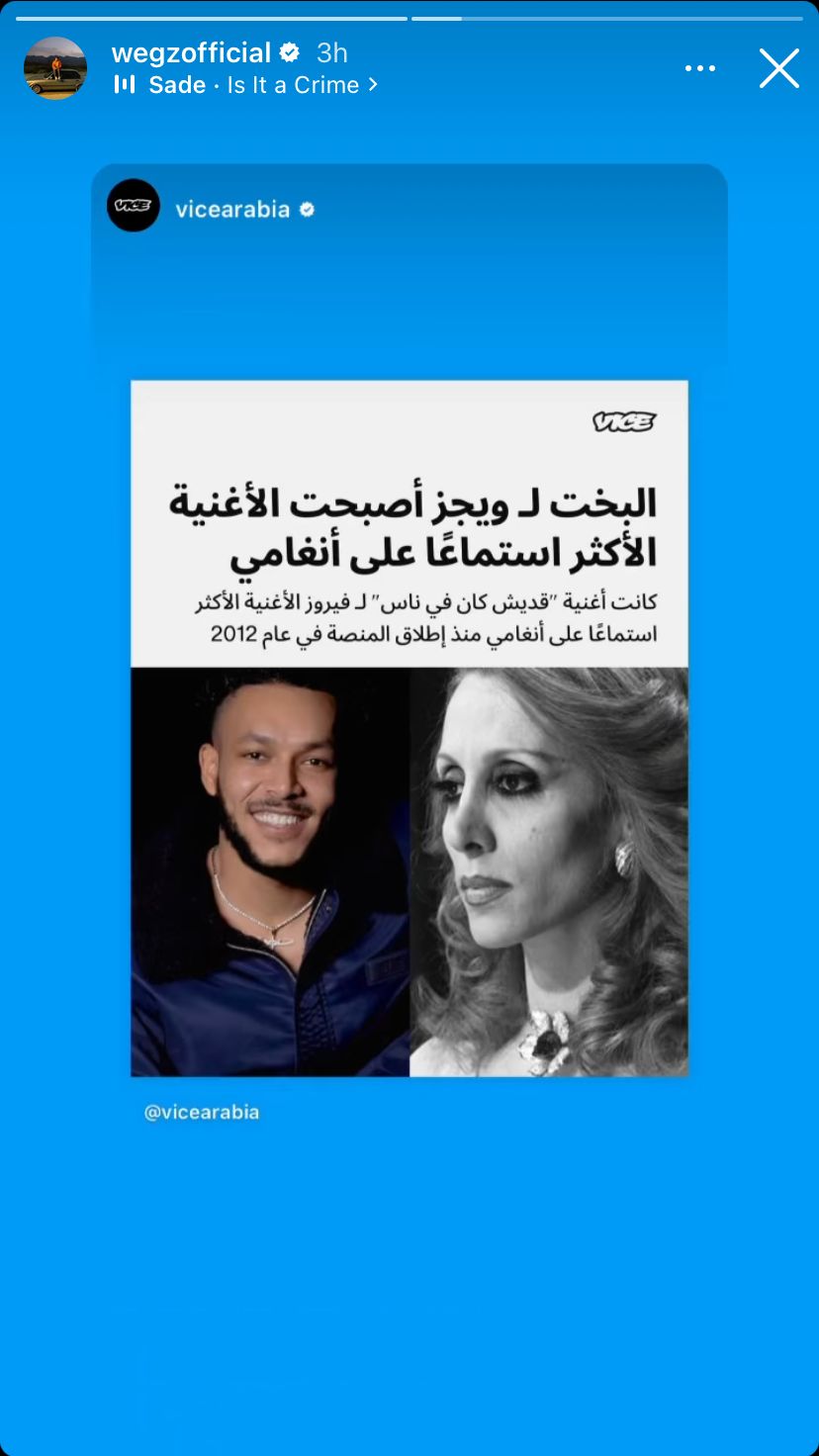 ويجز يتفوق على فيروز في الأكثر استماعا على منصة أنغامي بأغنية البخت