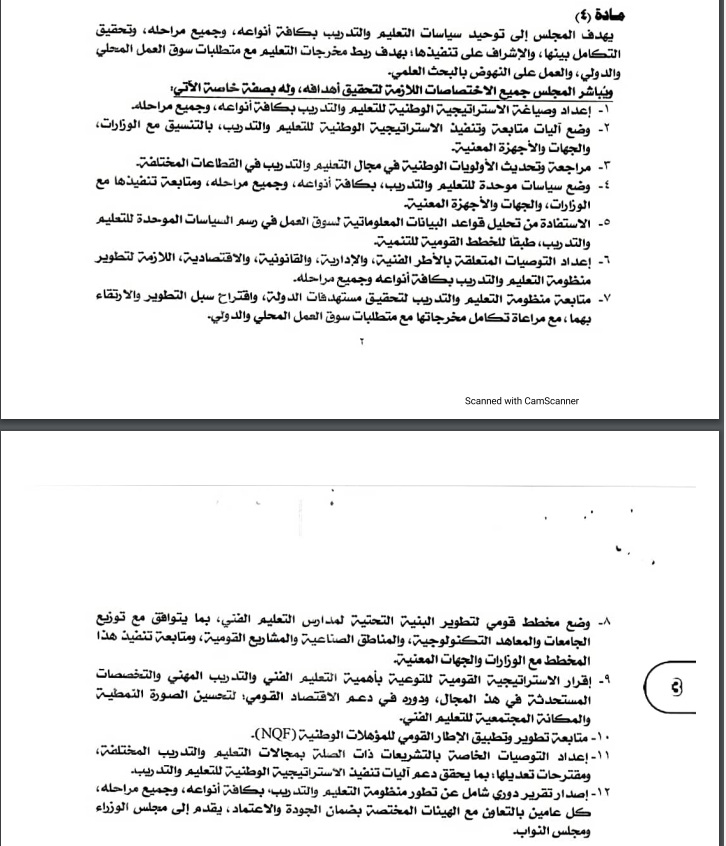 أبرزها إصدار تقرير دوري للحكومة والبرلمان.. ننشر اختصاصات المجلس الوطني للتعليم والتدريب