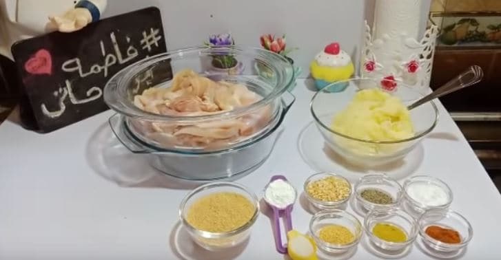 - بالإضافة إلى خلطة من البهارات عبارة عن ملعقة كبيرة من كل نوع (الملح- البصل البودر- البيكنج بودر- الثوم البودر- البابريكا).