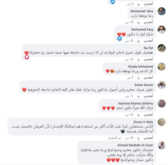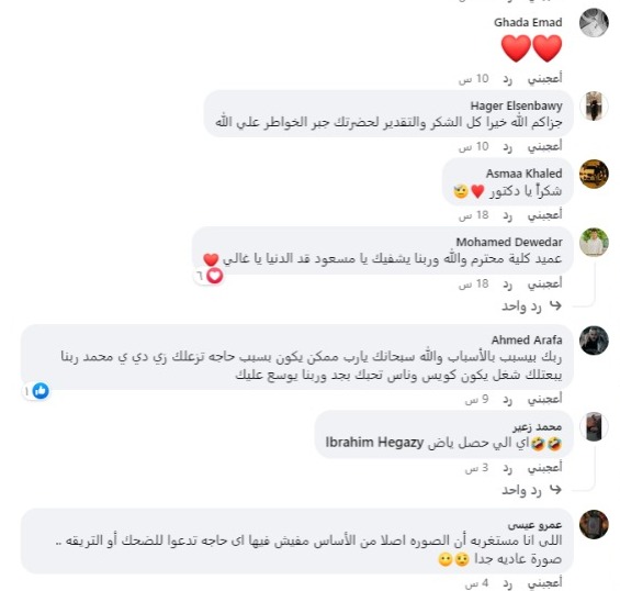 كما رأى أحمد مصطفى، متابع آخر: أن تصرف عميد الكلية جيد وهذا يدل على تواضعه، معقبًا: دكتور ممتاز.. ربنا يجبر بخاطره.
