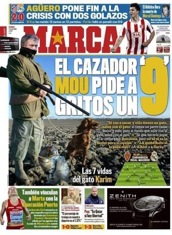 وخرج مورينيو بتصريحه الشهير عندما أجاب على سؤاله بشأن الاعتماد على كريم قائلا، “اذا لم يكن لديك كلب للذهاب للصيد، وكان لديك قط فسوف تذهب مع القطة، لا يمكنك ان تذهب وحيدا”.