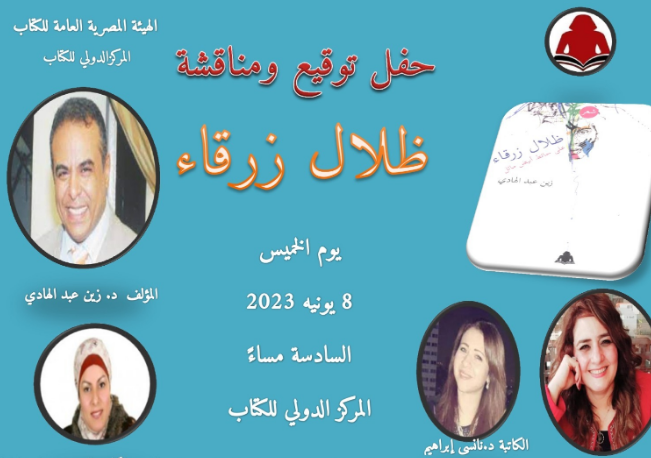 ينظم المركز الدولي للكتاب، التابع لـ الهيئة المصرية العامة للكتاب، برئاسة الدكتور أحمد بهي الدين، في السادسة مساء الخميس المقبل، حفل توقيع ومناقشة ديوان ظلال زرقاء على حائط أبيض مائل للدكتور زين عبد الهادي.